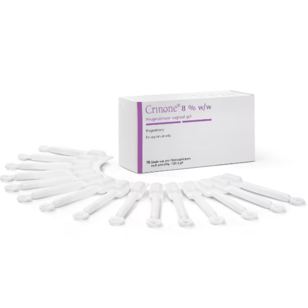 Crinone 8% phủ niêm mạc âm đạo để phóng thích progesterone tác dụng kéo dài.