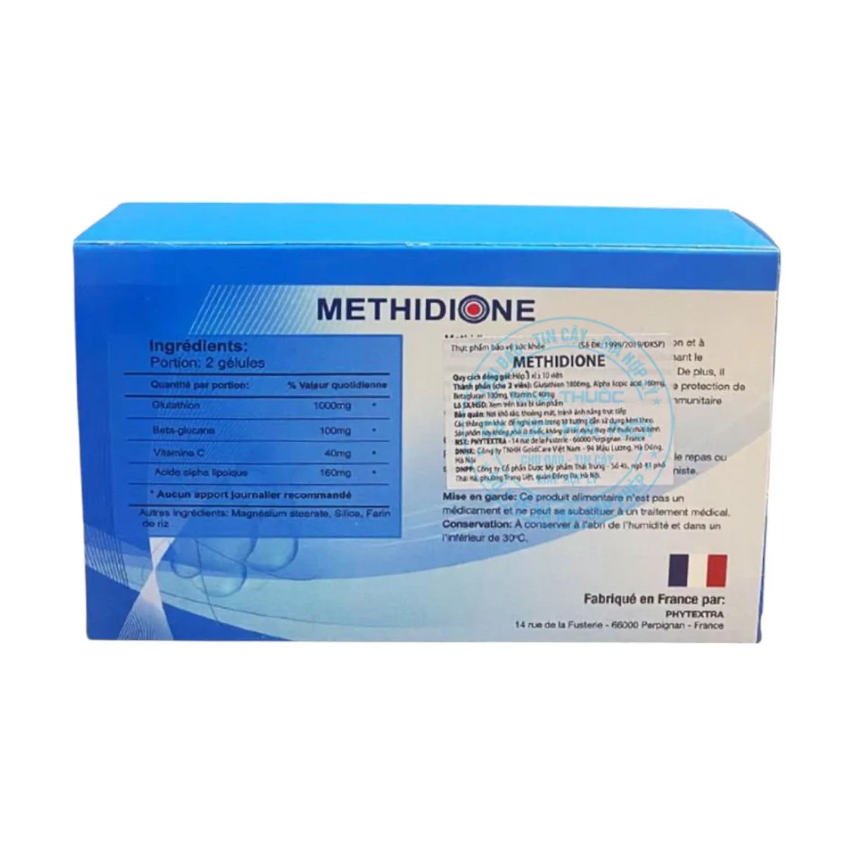 Methidione là một loại thực phẩm chức năng được bào chế dưới dạng viên nang với thành phần chính bao gồm Glutathione, Alpha liponic acid, Beta Glucan và Vitamin C. Những thành phần này không chỉ cung cấp nhiều lợi ích cho sức khỏe mà còn đóng vai trò quan trọng trong việc làm đẹp da, giúp làn da trở nên tươi sáng và khỏe mạnh hơn.