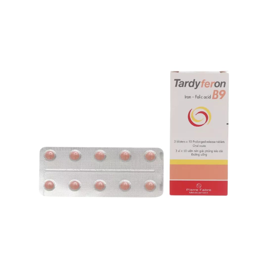 Thuốc Tardyferon B9 Pierre Fabre dự phòng thiếu sắt, acid folic cho phụ nữ có thai (3 vỉ x 10 viên)