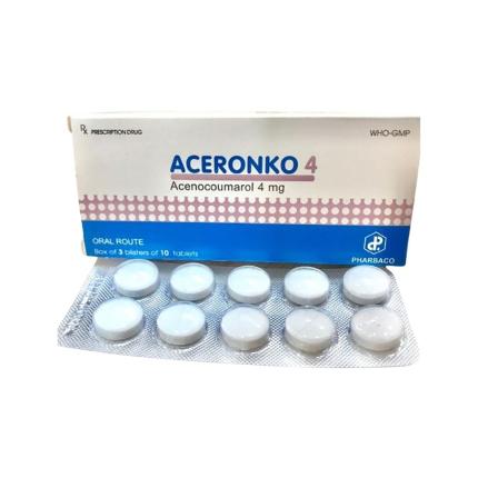 Thuốc Aceronko 4 Pharbaco dự phòng và điều trị bệnh nhồi máu phổi và cơ tim, huyết khối tĩnh mạch sâu (3 vỉ x 10 viên)