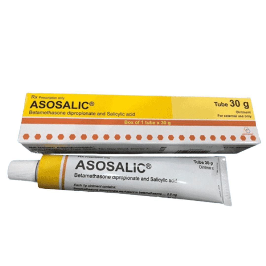 Thuốc Asosalic chứa ester dipropionat của betamethason là một glucocorticoid thể hiện đầy đủ tính chất của corticosteroid và acid salicylic là một chất có tác dụng làm tróc lớp sừng da.
