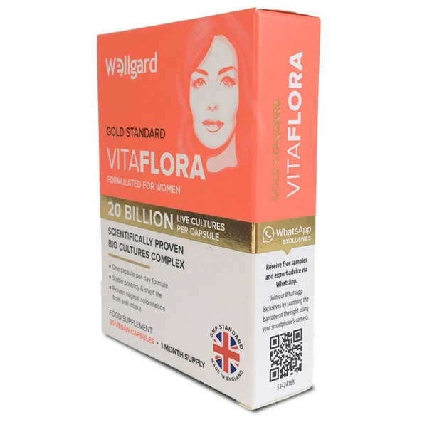 Wellgard Vitaflora cung cấp lợi khuẩn có tác dụng duy trì môi trường âm đạo khỏe mạnh, giảm ngứa ngáy và mùi khó chịu.